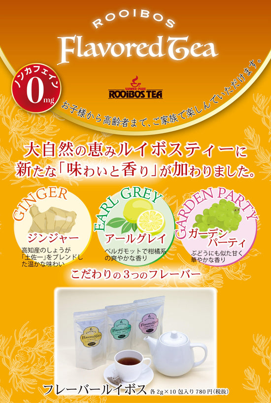 その中でも厳選された茶葉を使ってブレンドされたルイボスに、フレーバーをブレンドしたシリーズです。味と香りのハーモニーをお楽しみください。